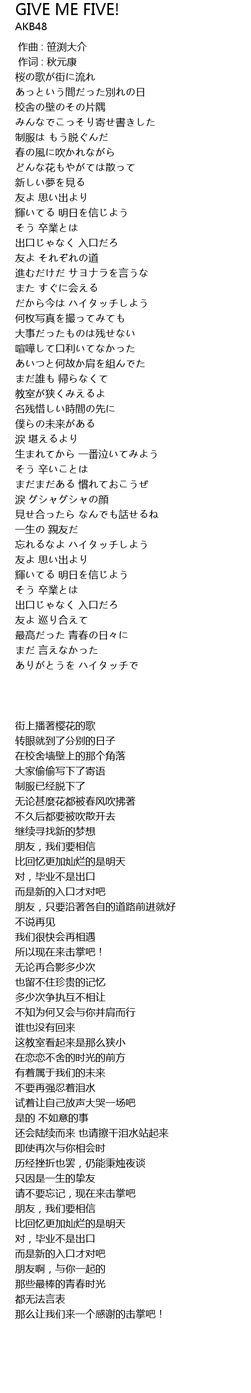 | [04:26.500] | 那么让我们来一个感谢的击掌吧! |