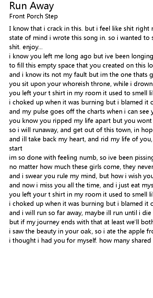 and i will run so far away, maybe ill run until i die |