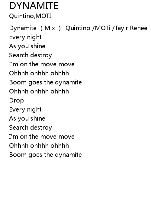 | [00:00.00] | Dynamite (Mix )-Quintino /MOTi /Taylr Renee |