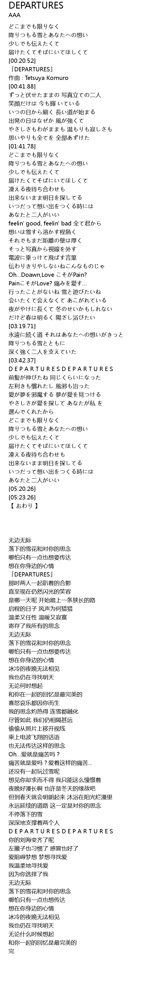 | [03:51.58] | D E P A R T U R E S D E P A R T U R E S |