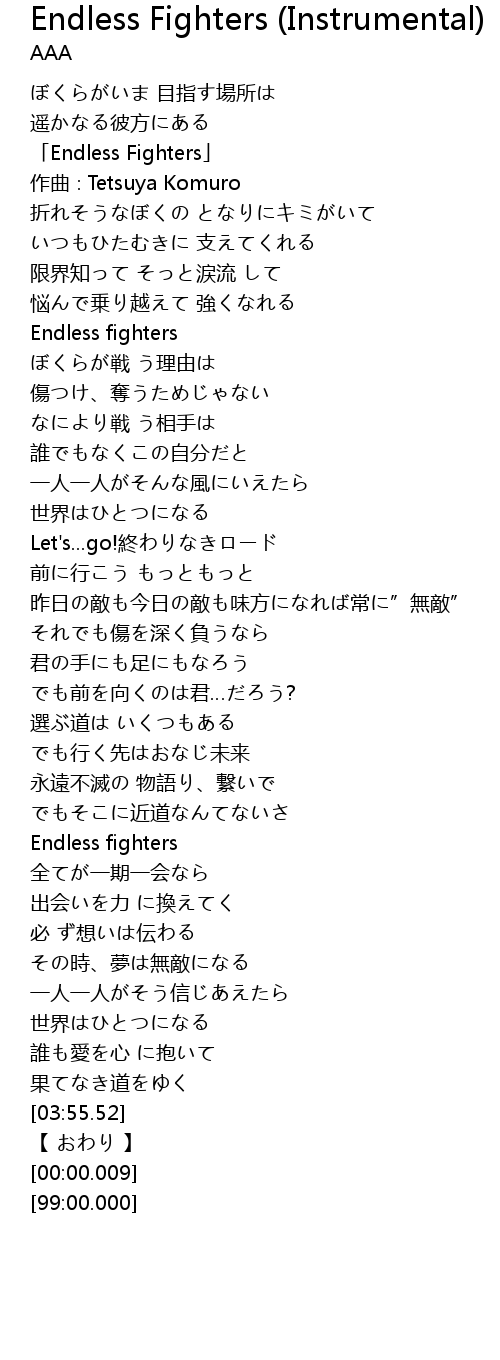 | [02:51.25] | Endless fighters |