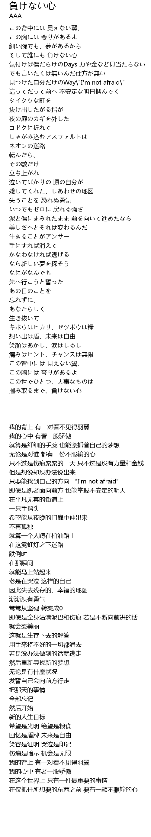 | [00:57.260] | jian zi fen Way" I' m not afraid" |
