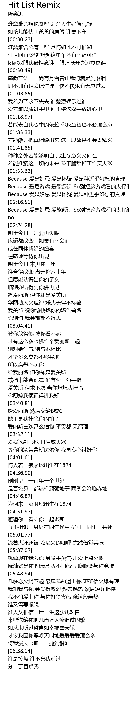 | [02:03.16] | Because 爱是游戏 爱能叛逆 So别把这游戏看的太仔细 |