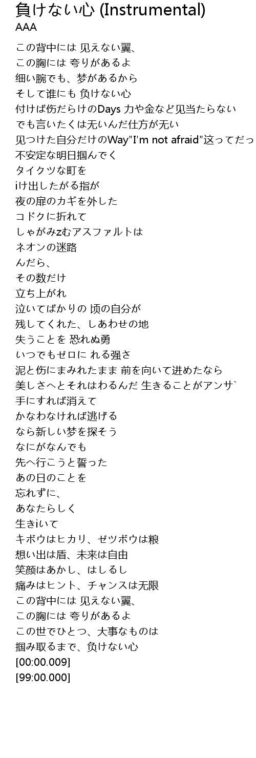| [00:40.29] | そして谁にも 负けない心 |