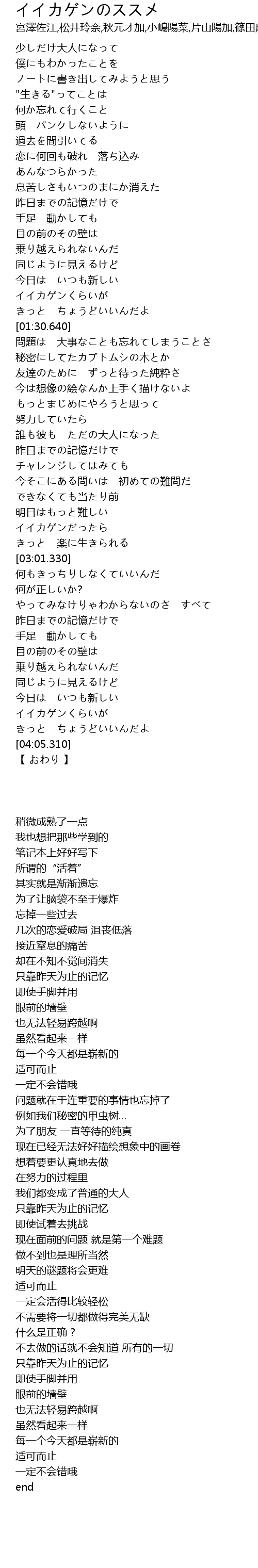 | [03:55.840] | イイカゲンくらいが |