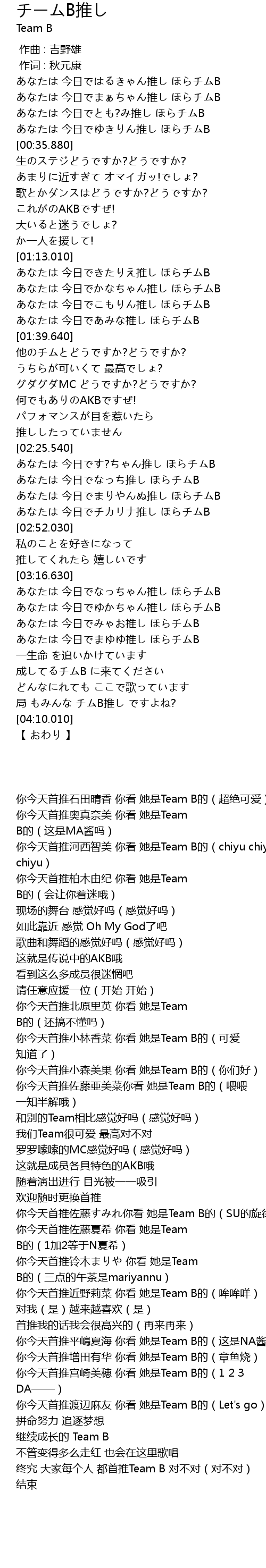 | [02:46.300] | 你今天首推近野莉菜 你看 她是Team B的(哞哞咩) |
