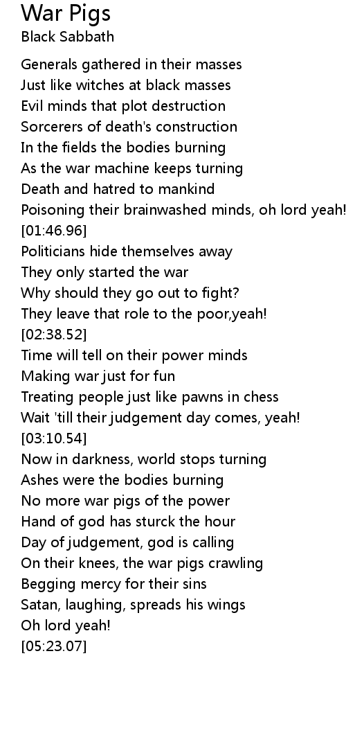 On their knees, the war pigs crawling |