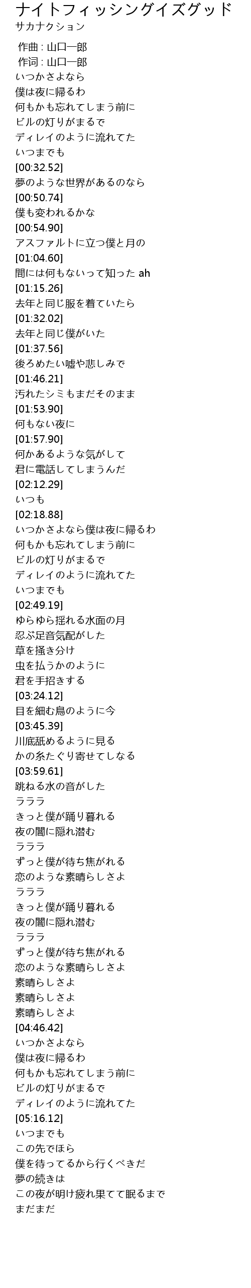 | [02:19.91] | いつかさよなら僕は夜に帰るわ |