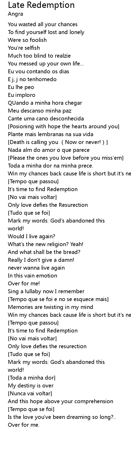 | Win my chances back cause life is short but it' s never late | |