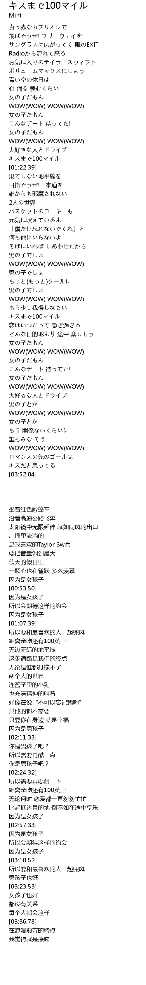 距离亲吻还有100英里 |
