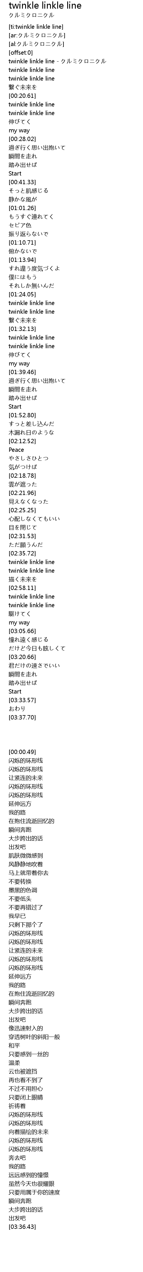 | [00:00.49] | twinkle linkle line - クルミクロニクル |