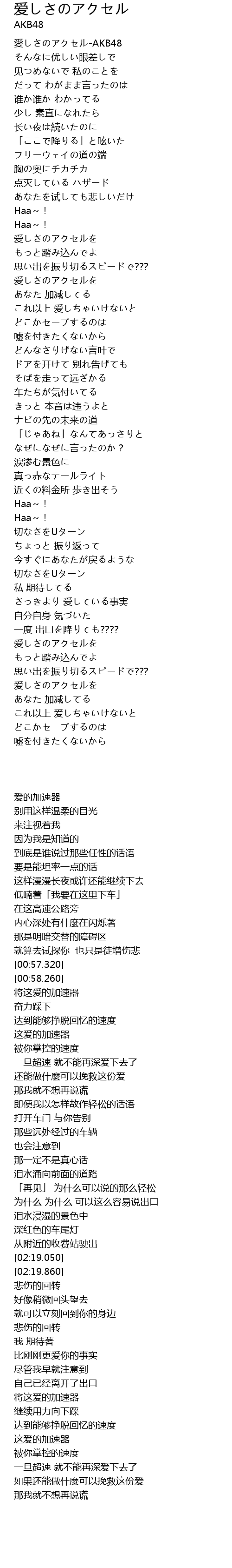 | [00:10.500] | 愛しさのアクセル-AKB48 |