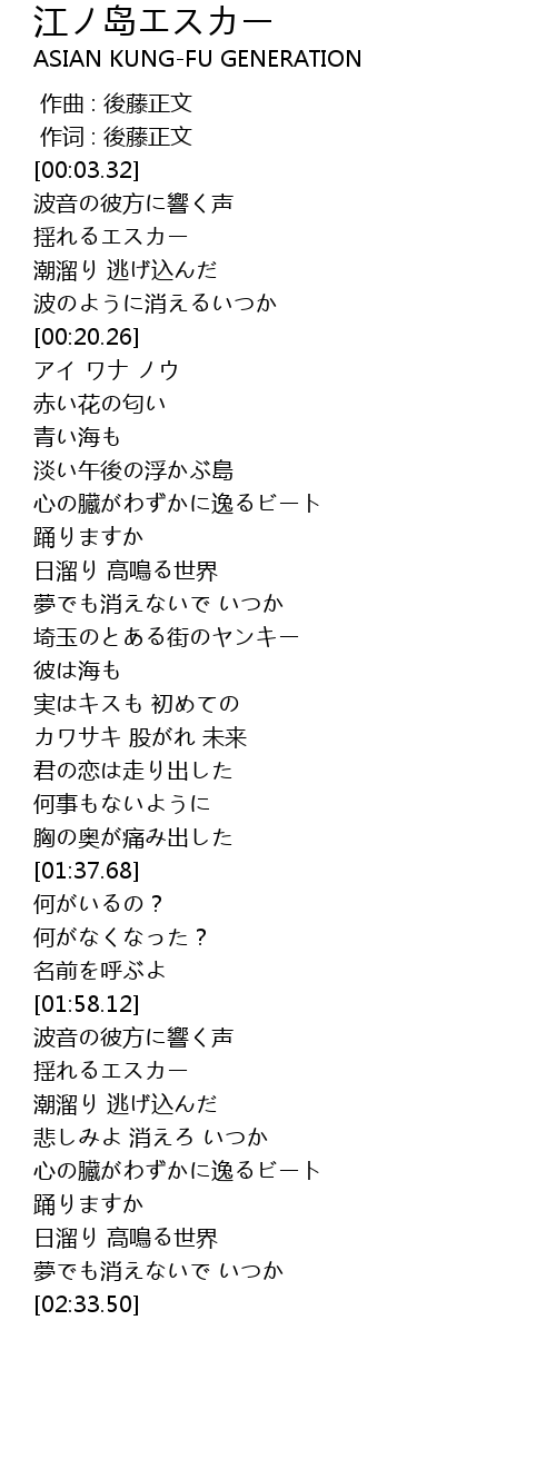 | [00:01.00] | 作词 : 後藤正文 |