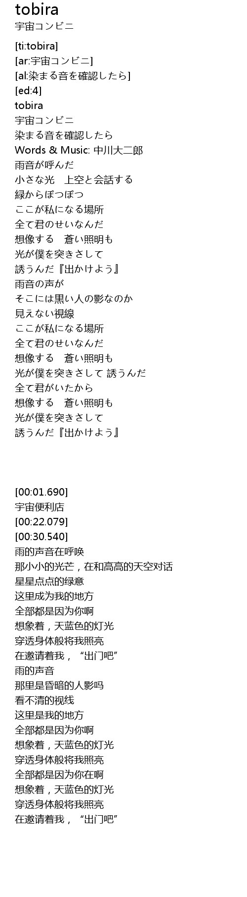 | [00:30.540] | Words & Music: 中川大二郎 |