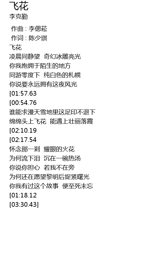 | [03:12.33][02:17.54][01:08.56] | rú xiàng nǐ gēn wǒ zàn jiè de huǒ huā |