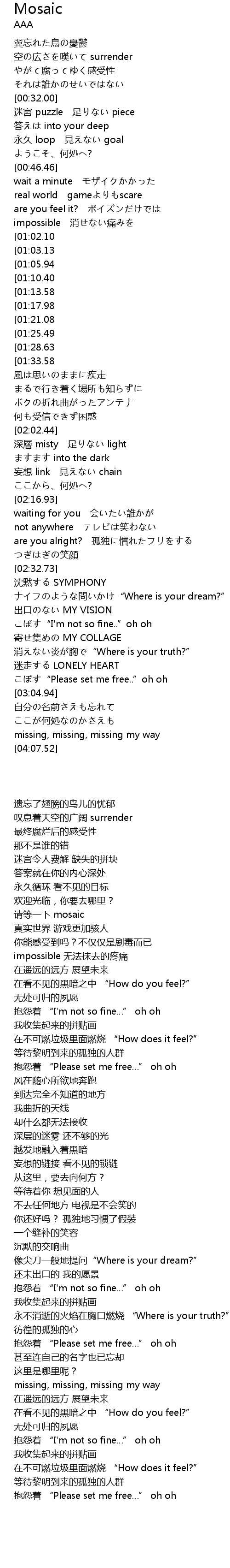 | [00:33.01] | 迷宮 puzzle 足りない piece |