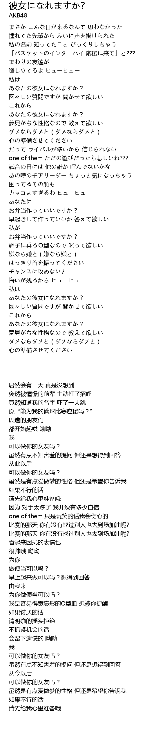 | [00:55.94] | あなたの彼女になれますか? |