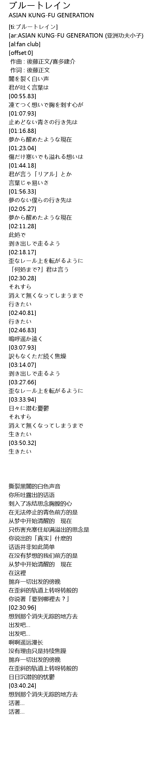 | [00:01.00] | 作词 : 後藤正文 |