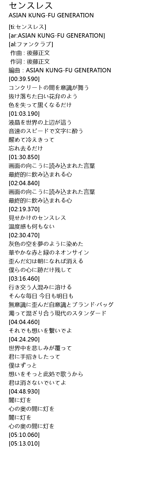 | [00:35.590] | bian qu: ASIAN KUNGFU GENERATION |