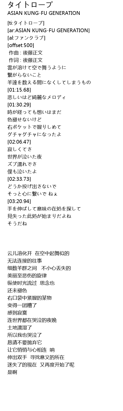 | 歌手 | ASIAN KUNG-FU GENERATION |