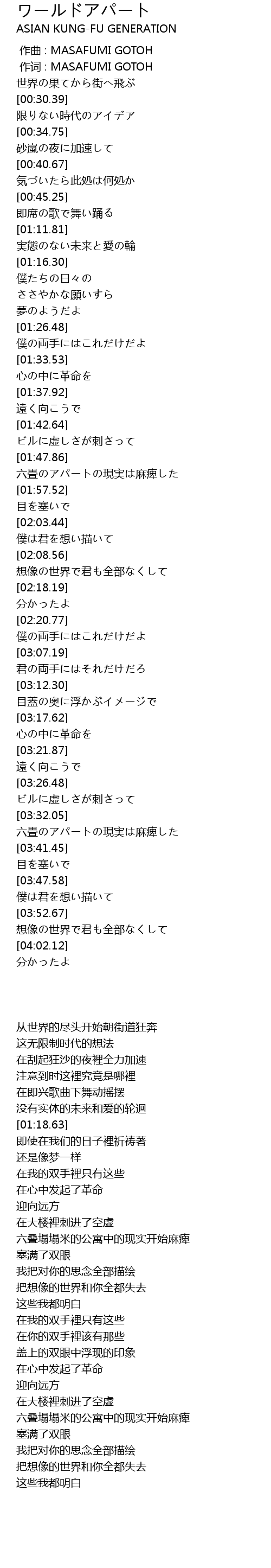 | [00:01.00] | zuo ci : MASAFUMI GOTOH |