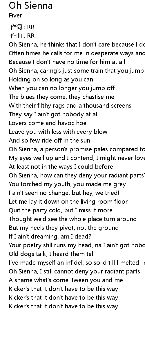 | [01:40.69] | Oh Sienna, a person' s promise pales compared to yours |