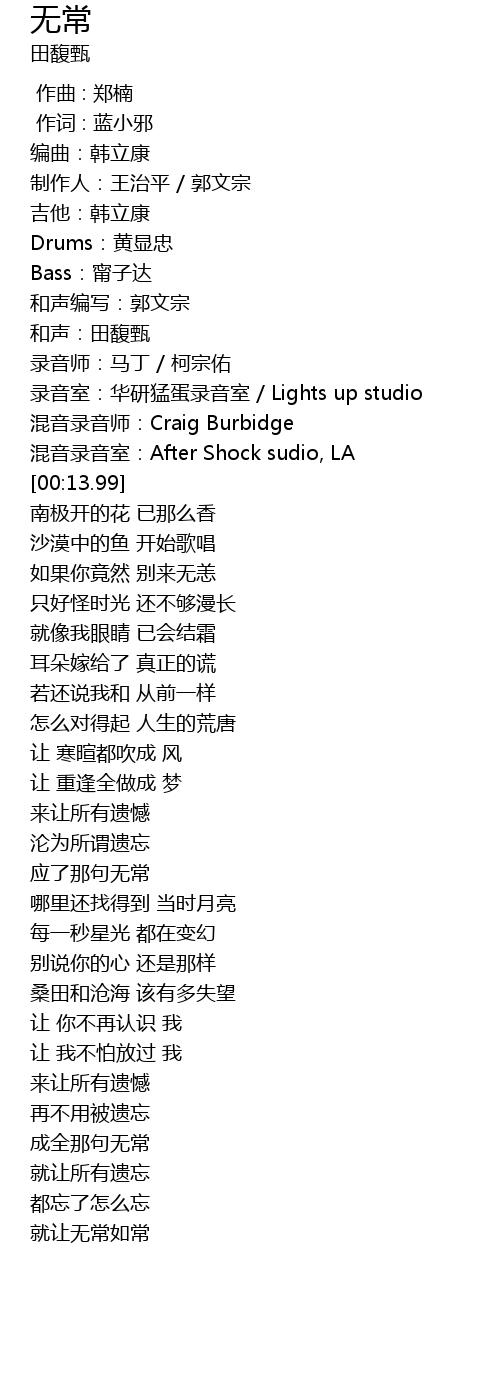 | [00:12.00] | 混音录音室:After Shock sudio, LA |