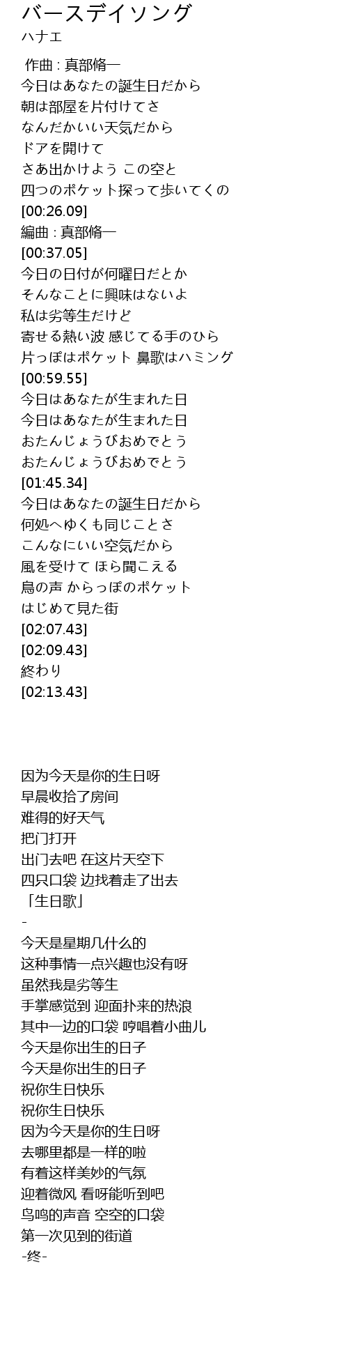 「生日歌」 |