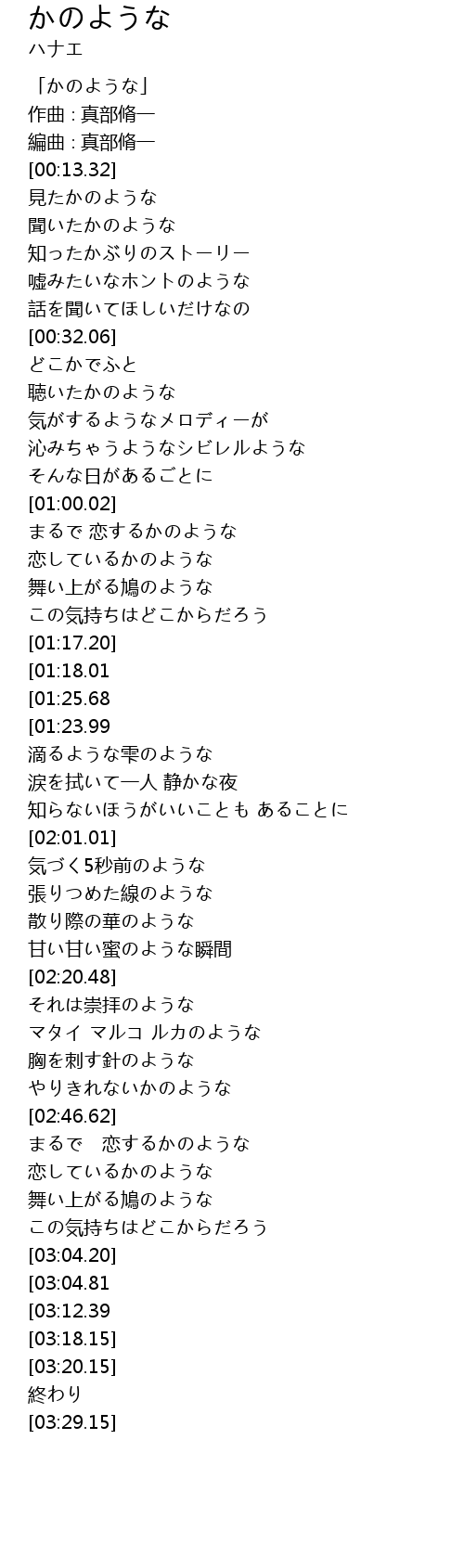 | [00:00.32] | 「かのような」 |