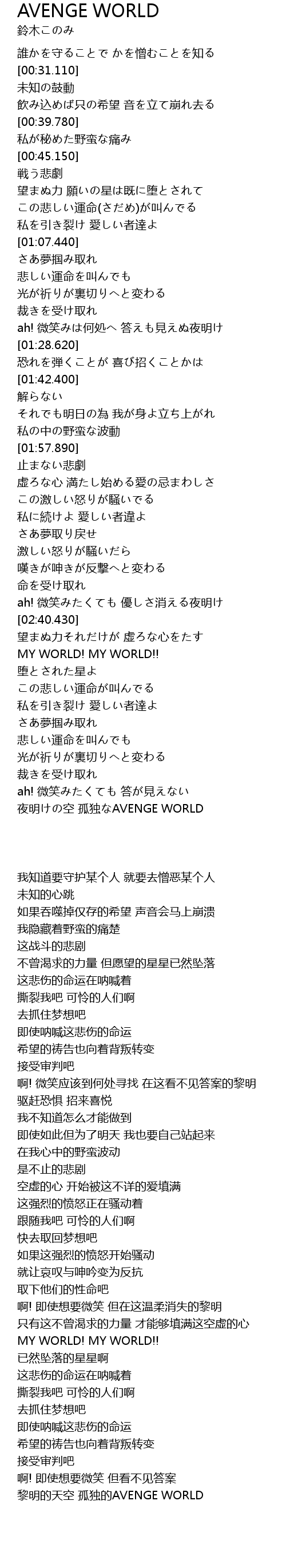 | [03:49.910] | 夜明けの空 孤独なAVENGE WORLD |