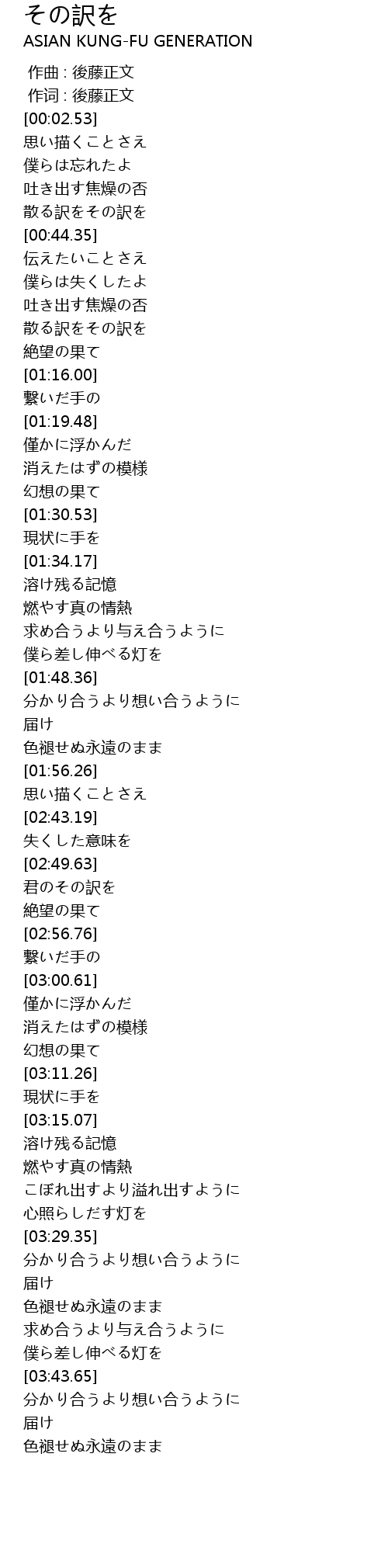 | [00:00.00] | 作曲 : 後藤正文 |