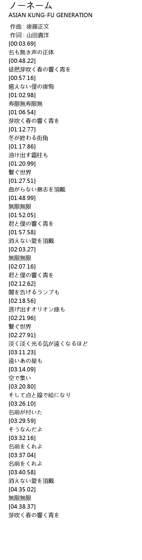 | [03:35.44] | 名前をくれよ |