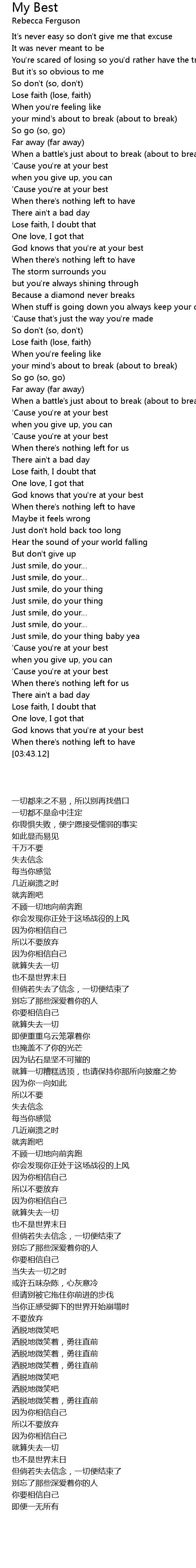 | [03:17.37] | ' Cause you' re at your best |