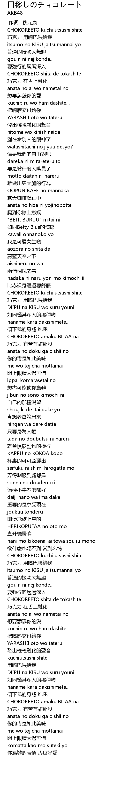 | [00:00.00] | 作词 : 秋元康 |