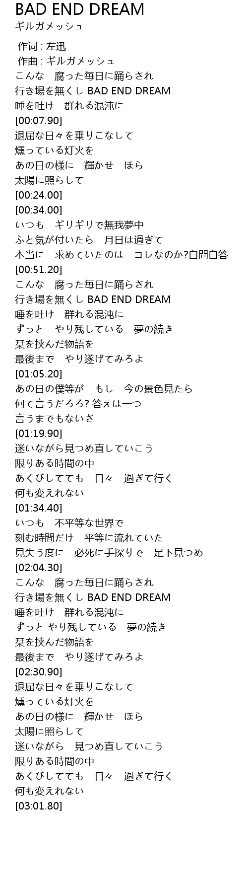 [02:19.82] 行き場を無くし BAD END DREAM