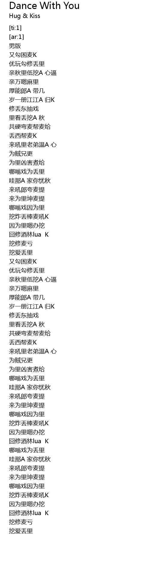 | [03:16.708] | 挖爱丢里 |