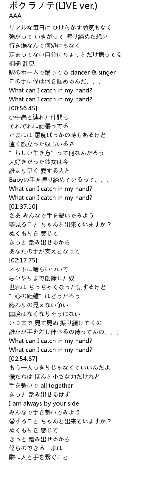 | [01:42.53] | さあ みんなで手を繋いでみよう |