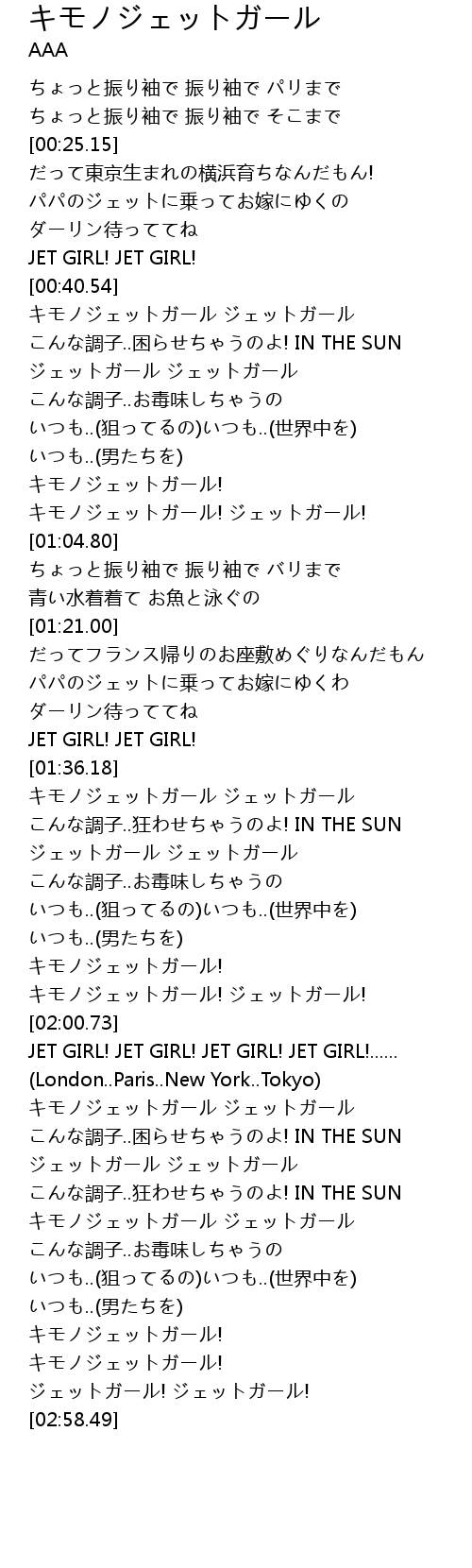 | [00:41.54] | キモノジェットガール ジェットガール |