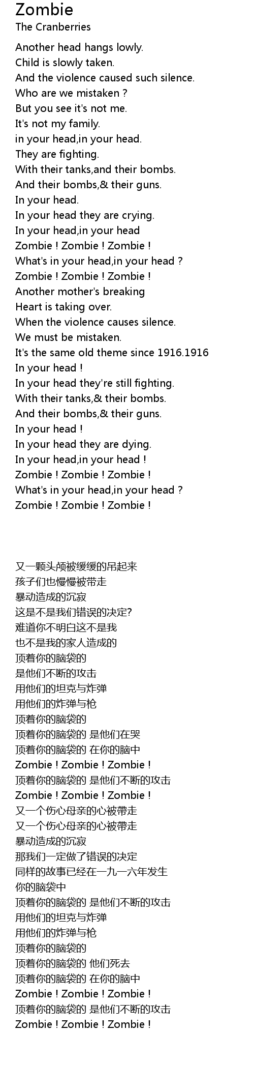 Zombie ! Zombie ! Zombie ! |