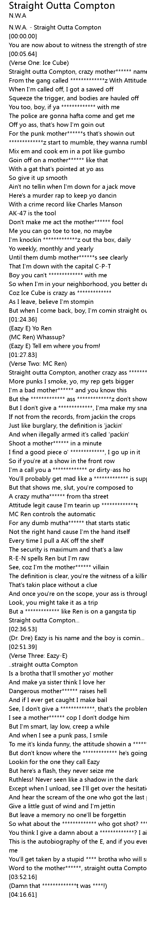 Word to the mother******, straight outta Compton |