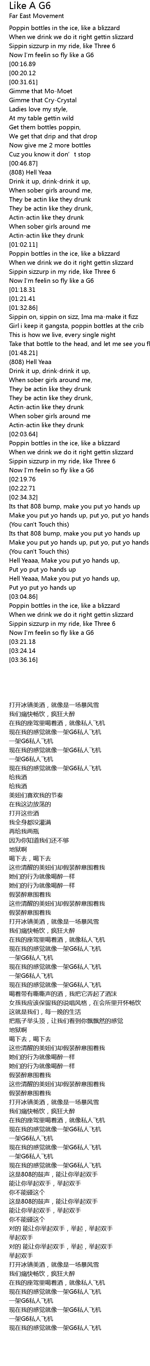 | [00:24.56][00:16.89] | Like a G6, Like a G6 |
