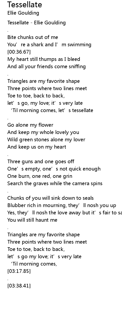 | [00:00.25] | Tessellate Ellie Goulding |