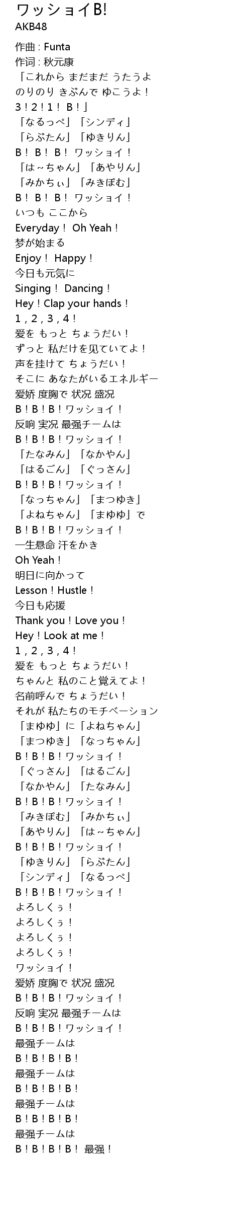 | 歌曲 | ワッショイB! |