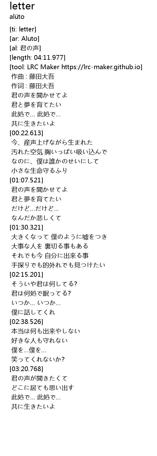 | [00:00.000] | 作曲 : 藤田大吾 |