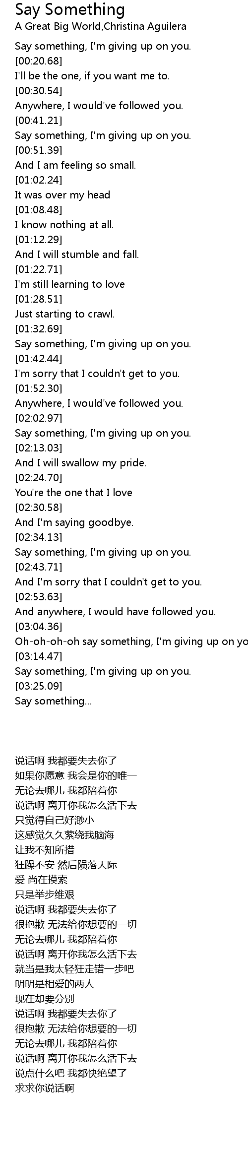 Oh-oh-oh-oh say something, I'm giving up on you. |