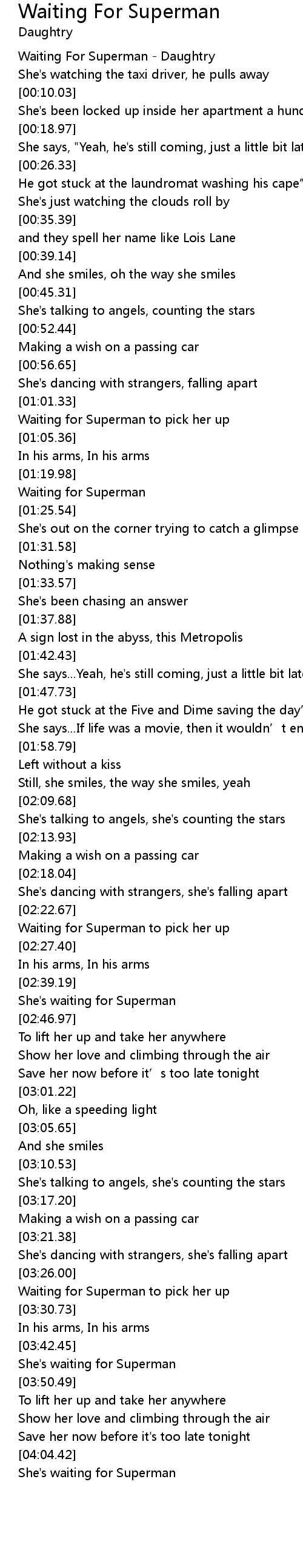 | [00:00.49] | Waiting For Superman - Daughtry |