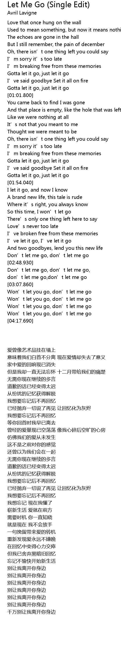 | 歌曲 | Let Me Go (Single Edit) |