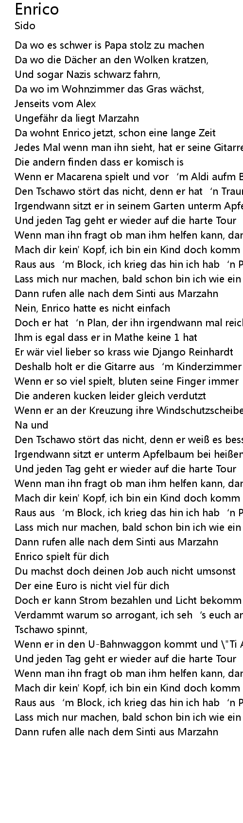 | Wenn er Macarena spielt und vor‘m Aldi aufm Boden sitzt | |