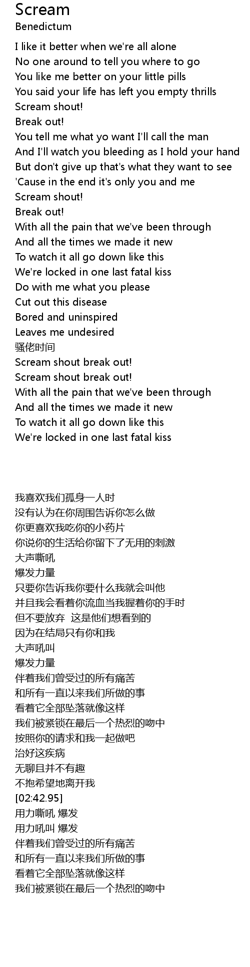 | [01:00.89] | And I'll watch you bleeding as I hold your hand |