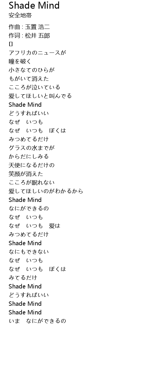 | 歌曲 | Shade Mind |